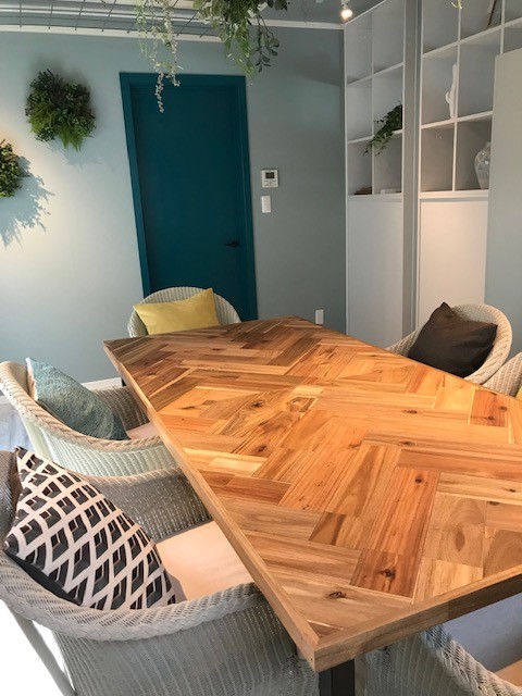ヘリンボーンのテーブルは木工作家のkiraku