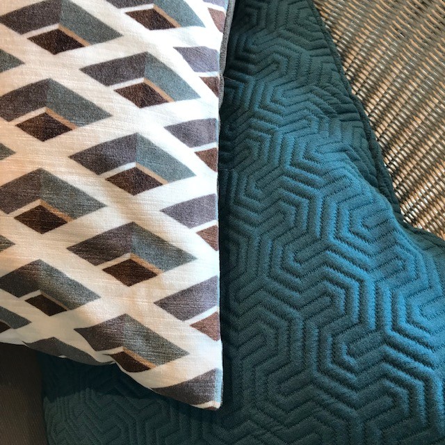 少しクスンダブルーとひし形のデザインのファブリックは