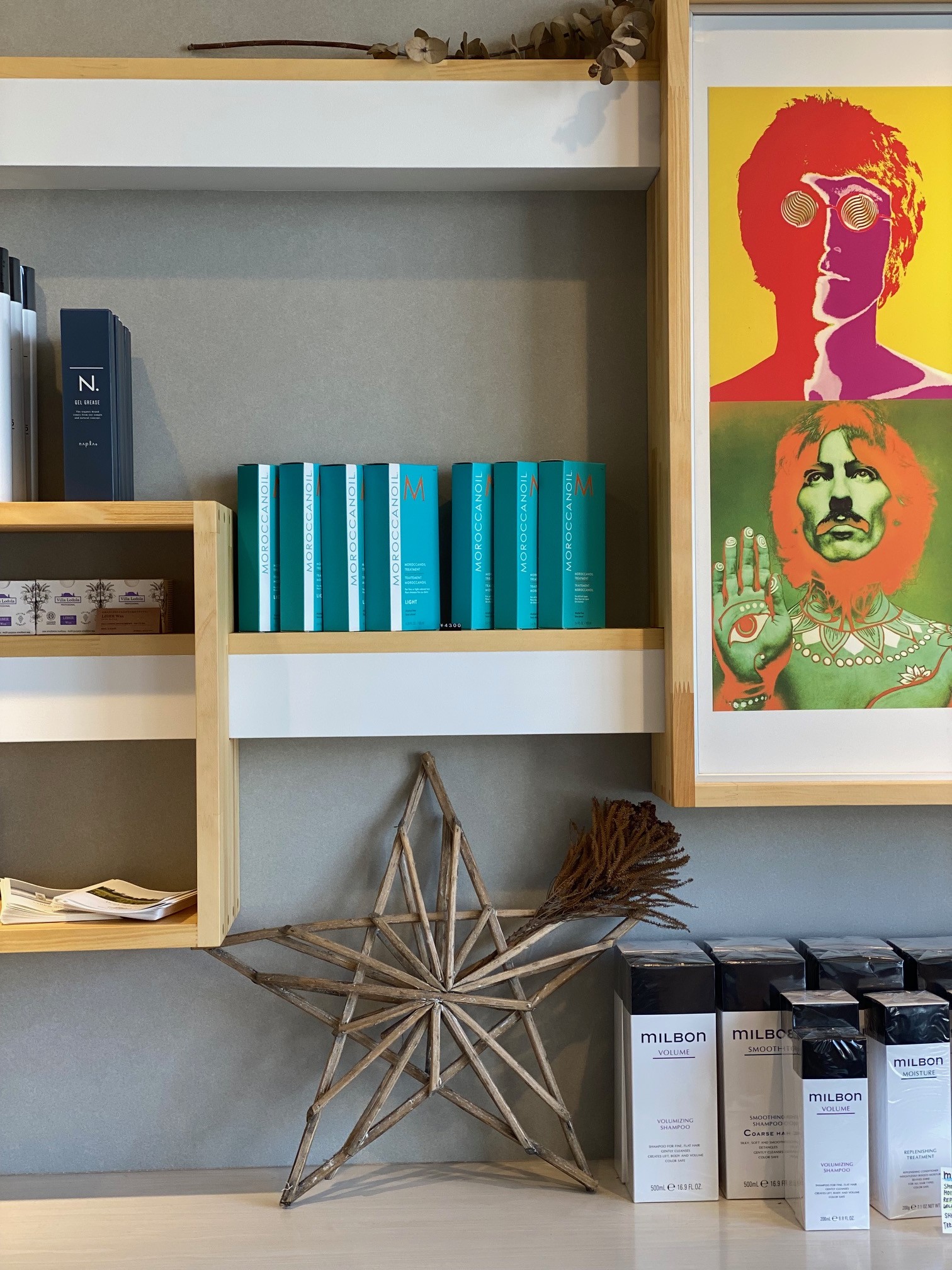 もっとシャンプーなどのヘアケア商品と作家さんのアクセサリーもディスプレイ出来るようにとのご要望でした。